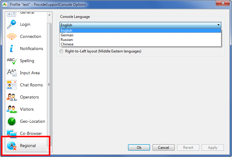 Note! The localization takes effect after the Console restart.